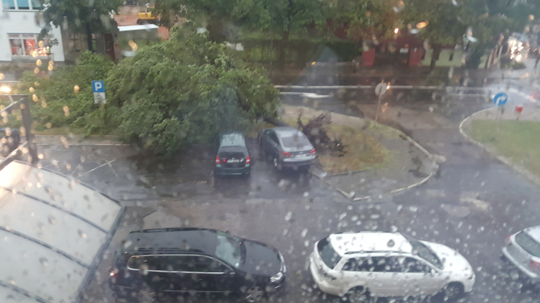 Погода нас не баловала. Пока спали в Польше,налетела буря. Пострадала соседняя машина,деревья валило с корнем