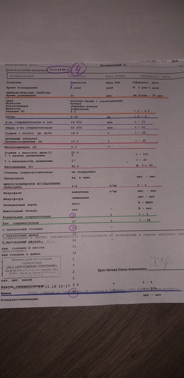 Как и многие, в первый раз я забеременела очень быстро, не преувеличиваю, буквально на 2 цикл незащищенного секса. Родила в 26 лет сыночка. С папой его прожили после рождения без 3 месяцев 3 года. Через полтора года после расставания я вышла замуж за мужчину, у которого есть 2 детей от 1 брака, но вот уже как почти 5 лет после свадьбы (6 лет вместе) совместного ребенка нет. Первые года 2 мы вообще не заморачивались, то пост держали Великий, то командировки были по 3 мес, по паре нелель. Нет, я то ждала, и через мес. 6 отрицательных тестов пошла к гине: мультифолликулярные яичники, наботовы кисты, АМГ повышен (как следствие МФЯ), цикл нерегулярный (пила 4 мес Ярину, на отмену ничего не вышло). И вот полтора года назад муж сдал первую из 4х СГ, не очень хорошая, прописали уколы ХГЧ, я научилась на его многострадальной попе их делать, пил витамины. Я параллельно к гине-эндокринологу пошла. Уж как меня не крутили, копали и в какие только дни цикла я не сдавала гормоны и мазки на флору и ИППП (муж тоже сдавал-чисто), у меня все в норме. Цикл немного гуляет от 30 до 42 дней. В общем, последнее, что мне выписала эндокринолог, это тест на овуляцию, Дюфастон 10 дней и анализ. Тест на О сделала, // и ПА был и до и после, дюф.пропила, тест на б на 10 ДПО показал, конечно минус, на 12 сдала ХГЧ: 1,2, б нет, сегодня 28 дц, задержка примерно, если через 14 дней от О, то вот вот на днях будет, БТ я не мерила, но темп.тела 37,2 без др.признаков орви или т.п. Думала, на Дюф реакция, но я его 4й день как не пью, а температура повышенная была со 2 ДПО и по сей день, грудь чувствительная. Но грудь ладно, что с температурой то? В общем, вопросов много, извините, если все в 1 куче: СГ мужа, мои гормоны, мои страдания и растерянность.