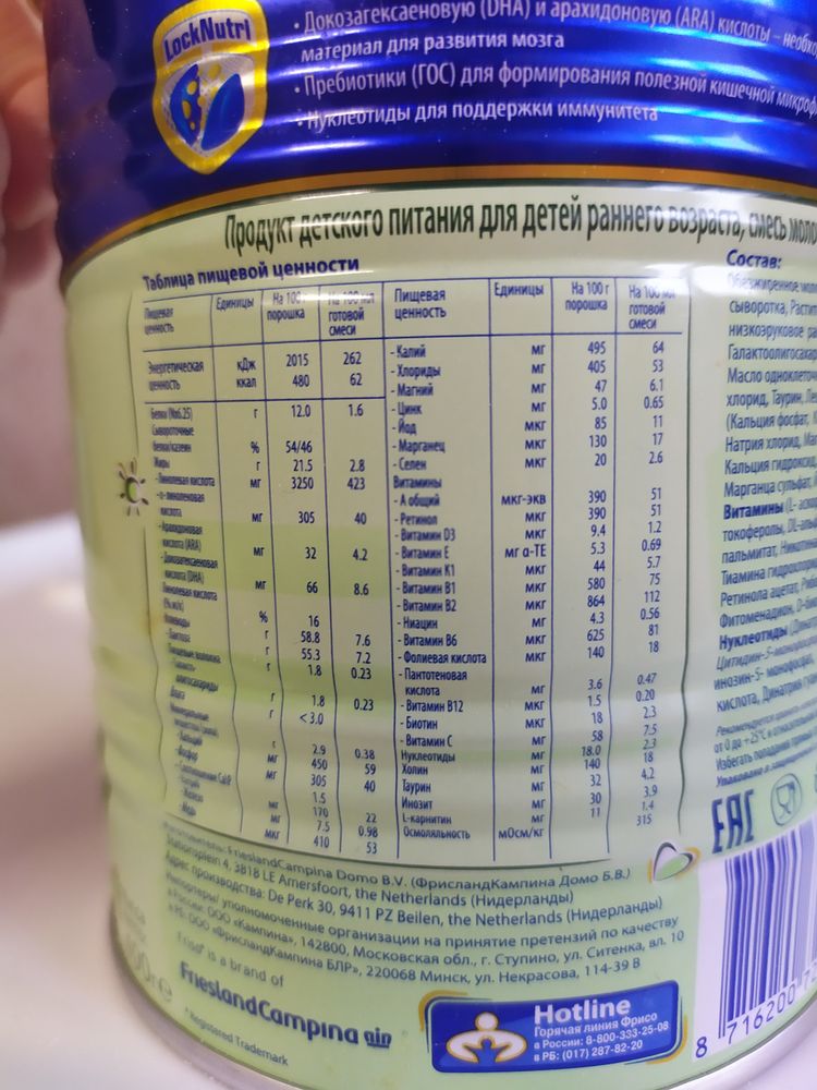 Максимальное сохранение натуральных свойств белка и хорошая переносимость, как и указывает производитель на своем сайте. Ниже можно убедиться на фото - смесь богата витаминами, минералами и нуклеотидами;