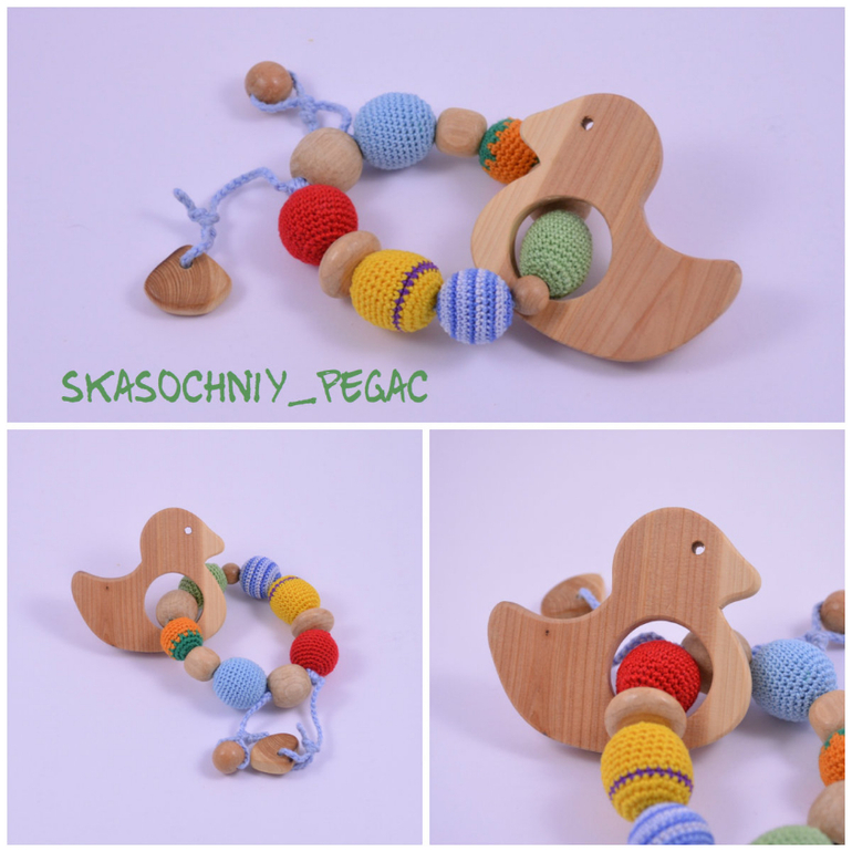 Длина 52см+шнурок, регулируются. Хлопок, буковые, можжевеловые и вишневые бусины. Можно грызть, стирать.