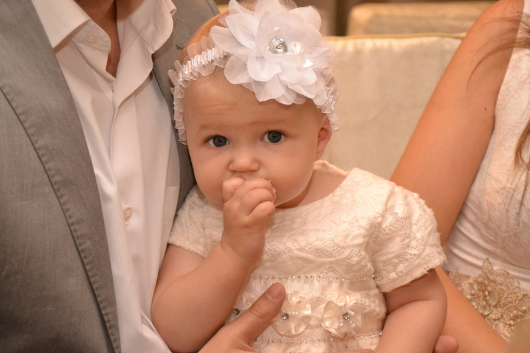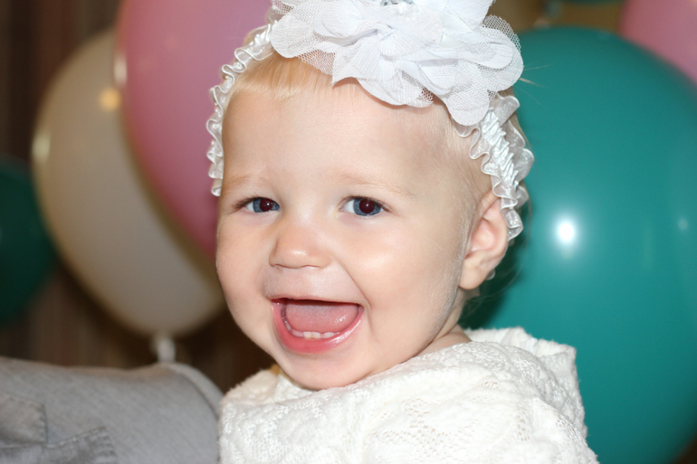 Торжественная часть прошла просто замечательно. Нелличка ввела себя очень хорошо весь вечер не плакала и не капризничала. Досидела до самого вечера.