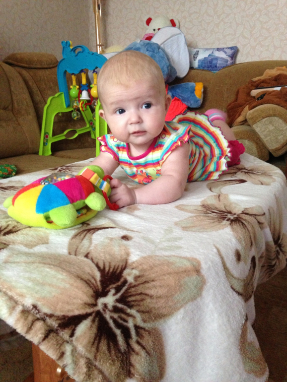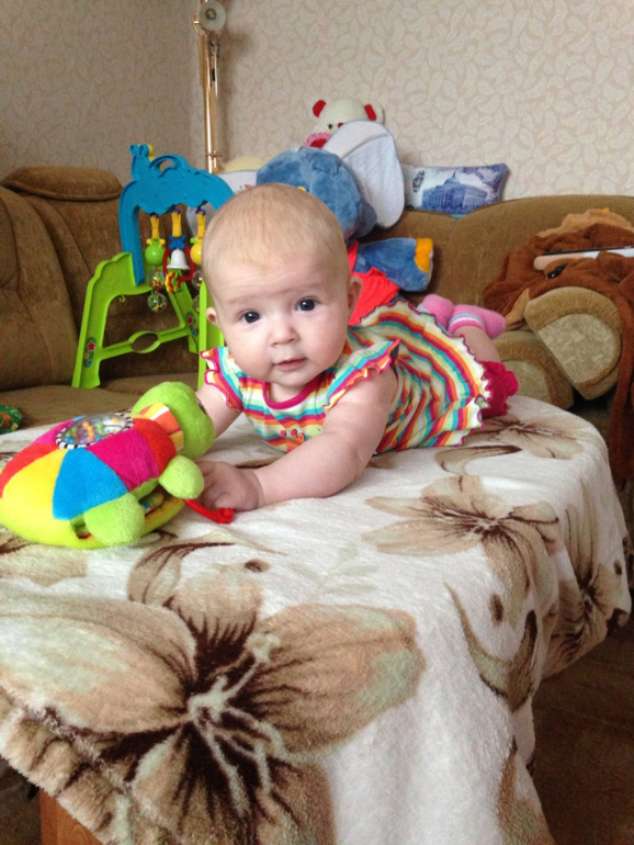 Болтаем как то по новому, то мы мычали, а теперь как будто как уточка крякает)))) Отлично уже руки поддаются, хорошо хватаем и дергаем игрушки наши любимые. Я ей дам фантик от конфетки шурщащий, а она прям и так хочет его разодрать и порвать, то не получается и уже может психовать. Конечто стала меньше лежать одна, раньше могла 1 час лежать а сейчас 20-30 минут и это хорошо, требует уже внимания к себе, одной быть не хочет, либо со мной лежи и развлекай меня или на руках тогда носи))) Вот такие мы уже требовательные))) Солнышко мое любимое!