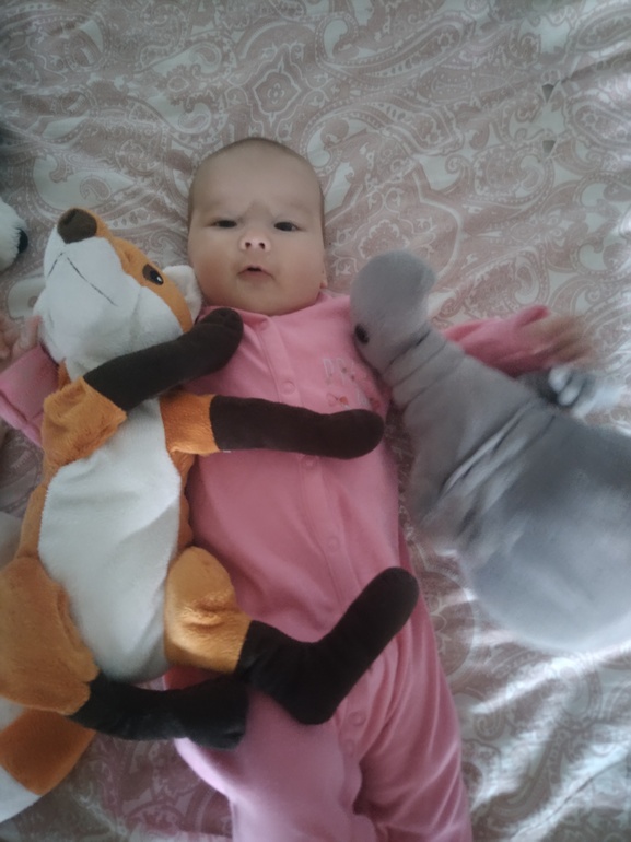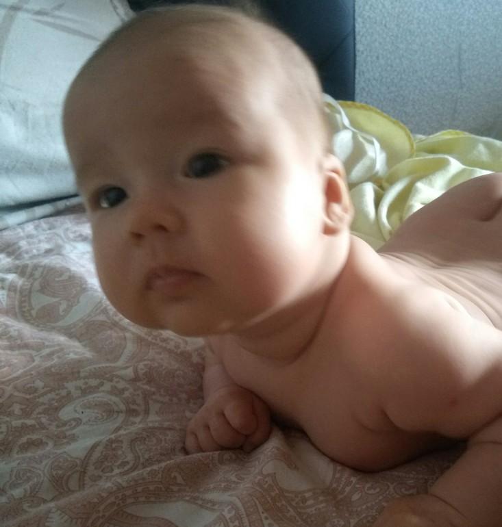 Прибавка за мес примерно 600 грамм, рост 1.5 см. Итого 64.5 см и вес 6950