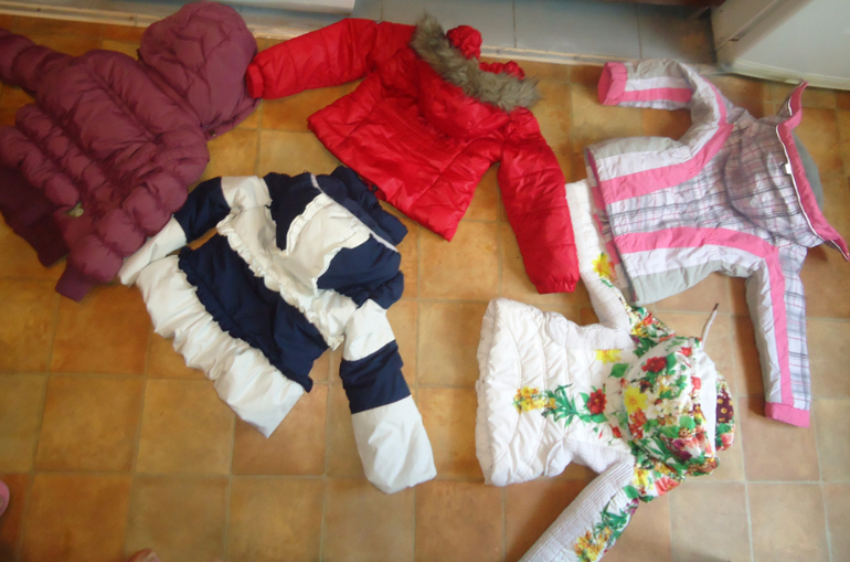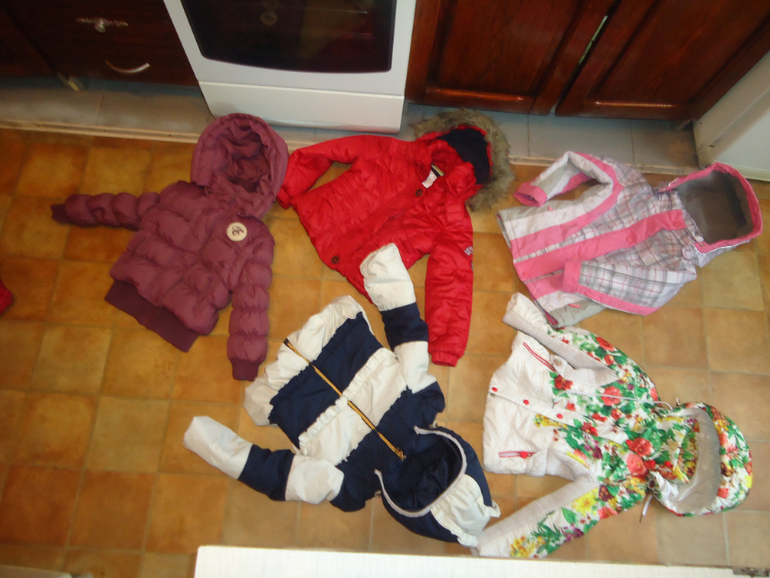 ДВ! Красная в наличии.Пуховик забрали.Красная по маркировке 104,но сильно большемерит,вот замеры : Рукав от плеча 41 см с манжетой,длина по спинке 40 см,фирма Topolino. Цена 500 рублей Не очень тёплая ,на зиму не пойдёт,на фото дочка ростом 113 см,по рукавам как раз ,но мне кажется по длине сама курточка уже коротковата.Розовая тоже осенняя,есть ещё тоненький полукомбез к ней,до 116 курточка,штанишки можно дольше там подворот большой.Комплектом 700 рублей