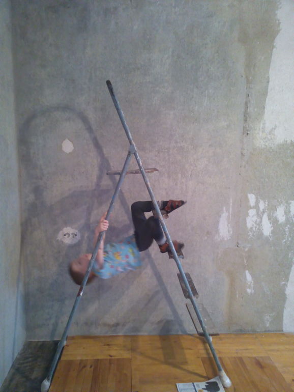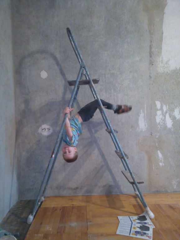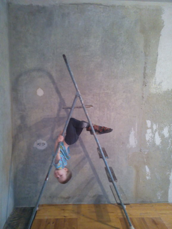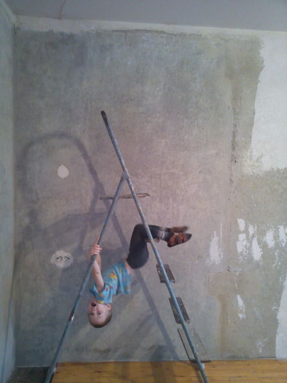 Все время за ним ведь не получится ходить. Отвернешься, а он уже на стремянке висит. Ремонт в разгаре, так стремянка постоянно разобрана.
