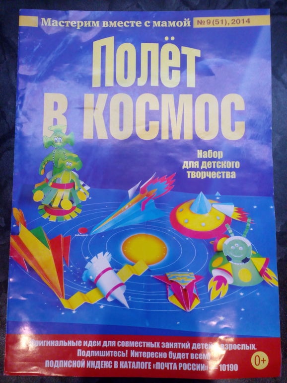 Вчера ходили на почту за посылкой и увидели там в продаже набор для детского творчества Полёт в космос - мастерим вместе с мамой... В нашем случае-мастерит мама))) Два дня я мастерила и вот, что теперь у нас есть.