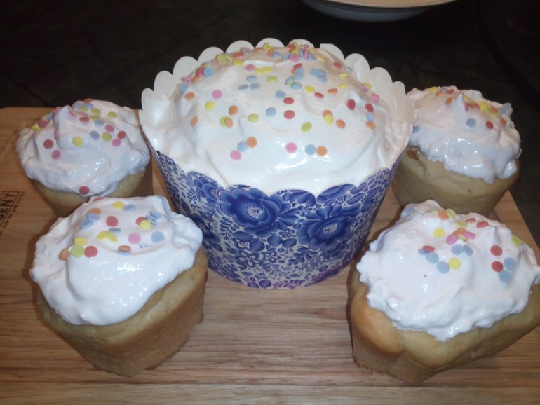 Вчера до 2 часов ночи делала пробные куличики. На вид получились очень даже ничего. Хотя толком еще даже и не распробовали их.