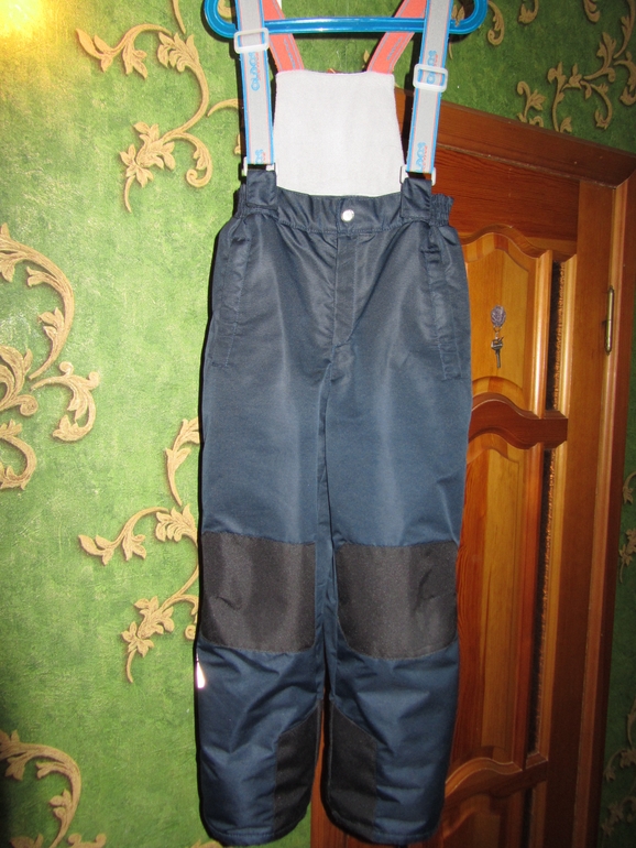 Карманы на молнии, есть внутренний кармашек на липучке. Брюки с высокой спинкой (утепленной флисом), застежкой на молнию и кнопку, с резинкой по талии, широкими эластичными регулируемыми подтяжками, карманами, усилениями в местах износа.