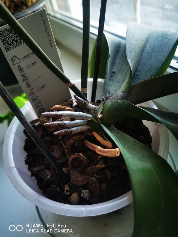 Месяц небыло нас в квартире и я уже думала, что все цветы сдохли. Приехали и вот что я вижу. А что это за когти торчат из горшка? Что делать с орхидеей дальше?