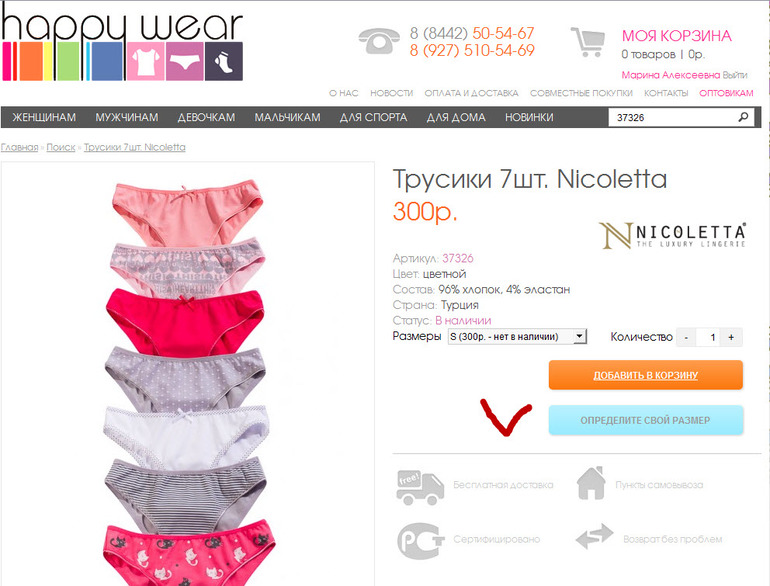 Таблицы размеров смотрите на сайте, выбираем вкладку
