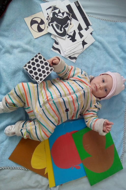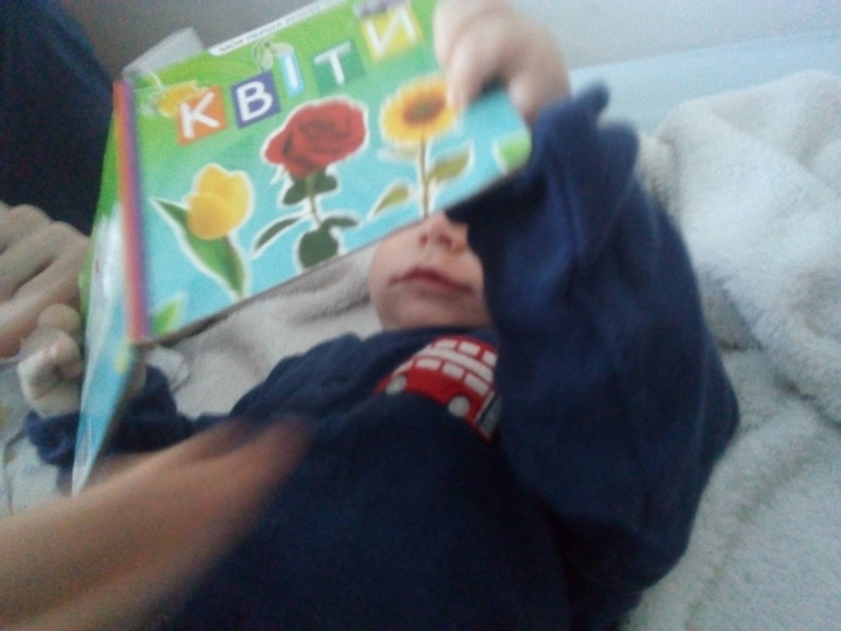 З третього місяця, я надумала поміняти на інші картинки, але моє немовля їх непомічає. Фаворит серед картинок в той час був хлопчик, Северин з ним розмовляв, довелось його врятувати.