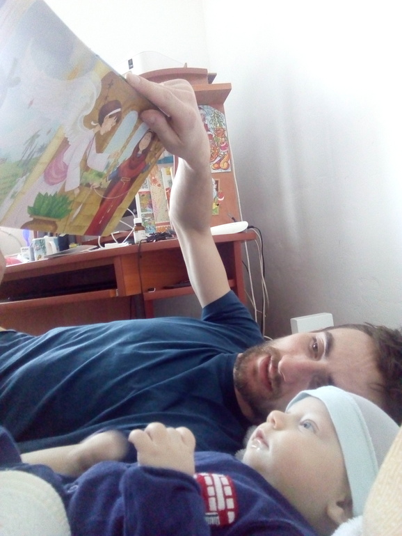 Тато зранку позаймався, що ж вони робили? Так ось, читали біблію... і мама в обід також, щоб не порушити цю гармонію дня та не вдаватись до інших книг. О таке не вдале фото получилося. Але, маємо те, що маємо.