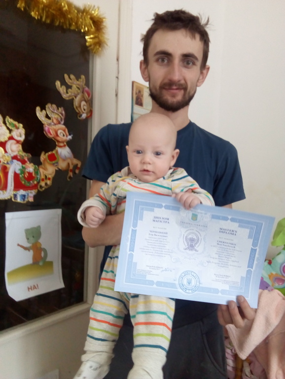 Татусь пішов отримати диплом на урочисту частину, а ми залишились у двох.