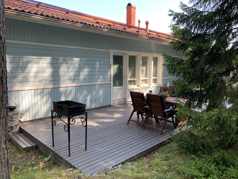 В общем, дом мы приобрели через 2 месяца после того, как я его изобразила. Ровно такой же как на картинке - одноэтажный, голубого цвета, с красной черепичной крышей и деревянным настилом во дворе. Я его узнала еще в объявлении о продаже, а когда мы приехали его смотреть, то сразу на месте сделали предложение о покупке. Это был дом нашей с мужем мечты, размышлять было не о чем. Малыш у нас родился в феврале, в июне ему исполнилось 4 месяца. Эргорюкзак такой же модели как на картинке дала в аренду подруга. Где мы проводим с сыном летние погожие дни догадаться, наверное, не трудно.