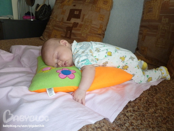 И вот так любим поспать, на подушечке- "Дуняше" (так братик назвал жирафика-аппликацию на ней)
