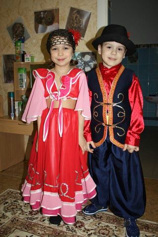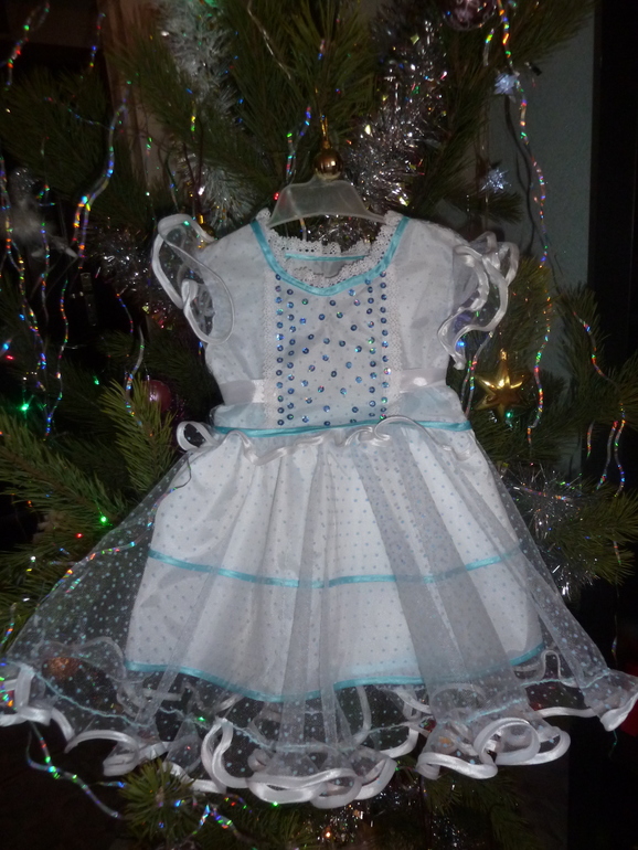 Уже у 5-летней героини детсадовского утренника, шифон и лента с паетками. (на фото сыночек держит))