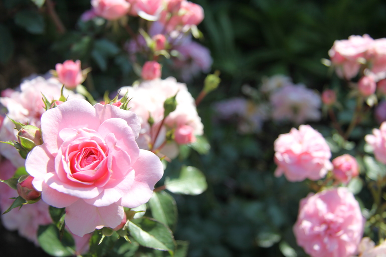 Цветение 2-й год. Романтичная незнакомка. Приобрела ее в обычном садовом центре у дороги. Похожа на флорибунду. Беспрерывное цветение до поздней осени.Цветки собраны в кисти по 7-11 на одном побеге.