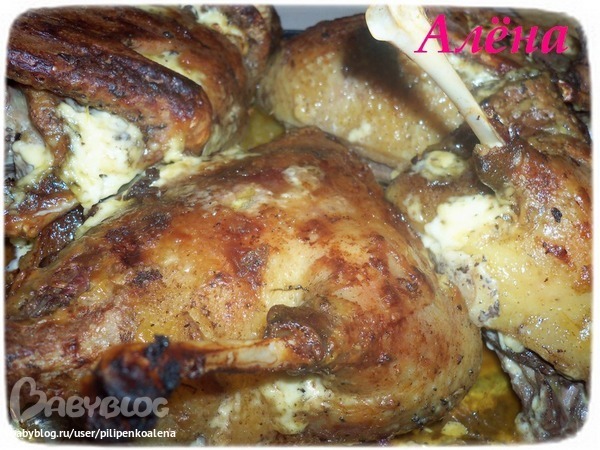 Затем хорошенько намазываем специями, и в середине и внутри. Поливаем соком лимона( то, что останется от лимона я кладу в середину тушки).