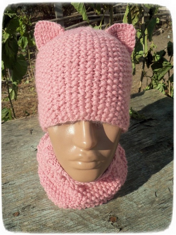 Комплектик для девочки. Шапочка- кошка+ снуд.![]()