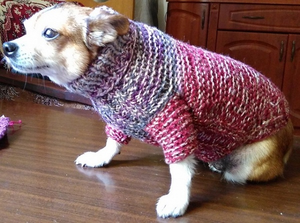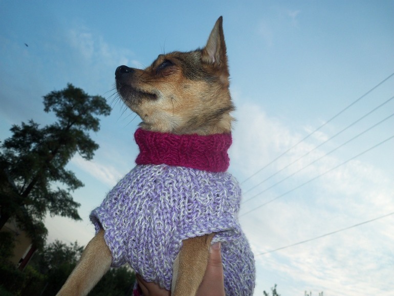 Хочу связать нашей Клёпе но сомневаюсь. Так как у нее все свитера с горловиной.