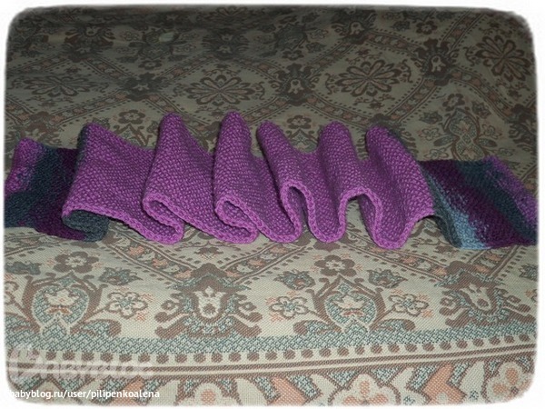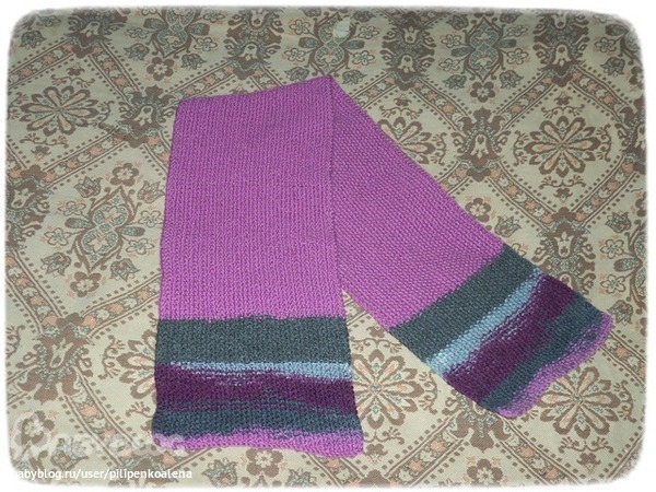 Вчера довязала шарф. Ширина 20см, длинна 120см. Жемчужная вязка, края ниткой секционного крашения.