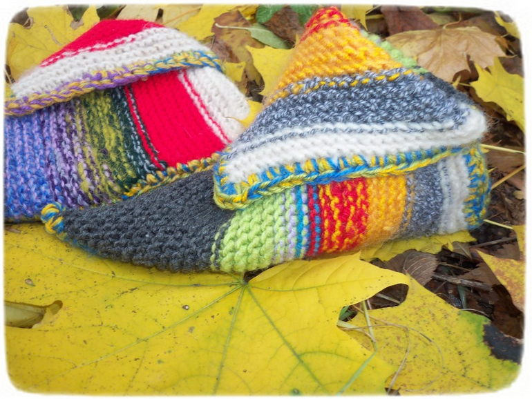 Очередной пристрой остатков пряжи. Связались вот такие разноцветные тапки для одной милой девушки. Толстые и тёплые.