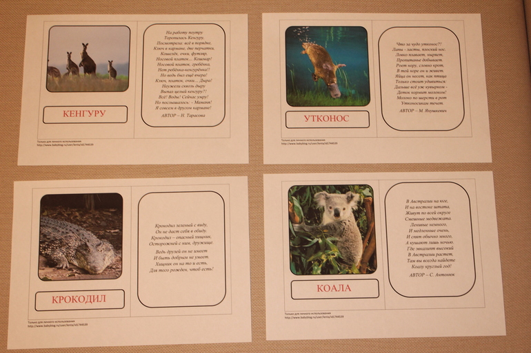 Комплект карточек со стихами.