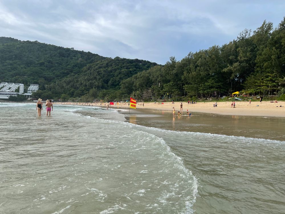 Пляж наш домашний Най Харн очень хорошо 👌 пологий вход песочник и хвойные деревья и тенек вокруг бухты.