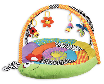 Бьем по игрушкам, когда ползаем, активно рассматриваем пеленки, игрушки, захватываем их в руку. Если поднять с пеленки, игрушка зачастую берется с собой:)