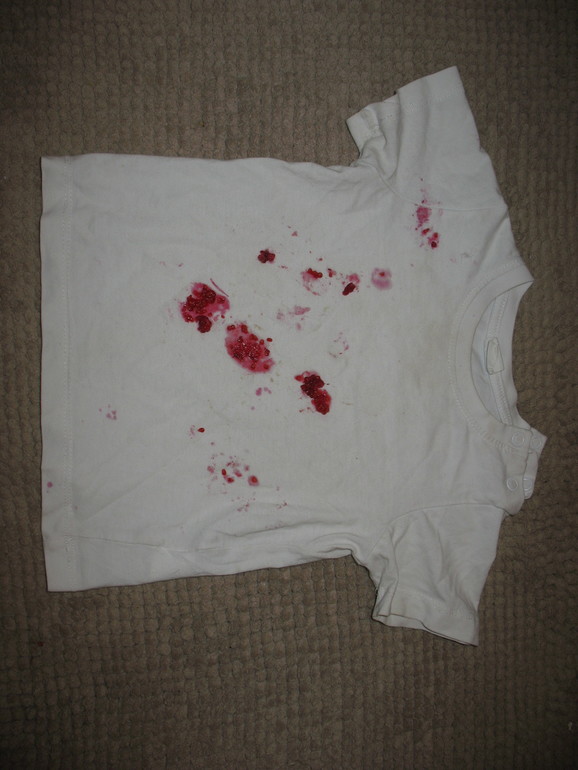 . Покормили малыша и тщательно раздавили и размазали ягоды по майке
