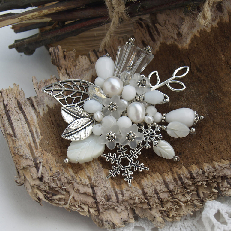 Я очень люблю морской стиль в украшениях! Обычно делаю "морские" броши и браслеты. А тут решила собрать брошь. Вот такой комплект получился!