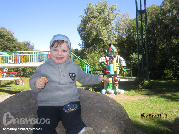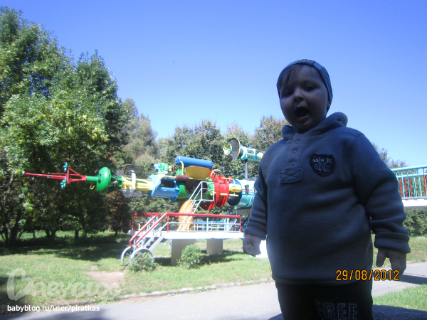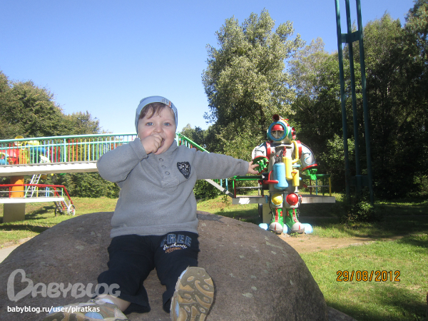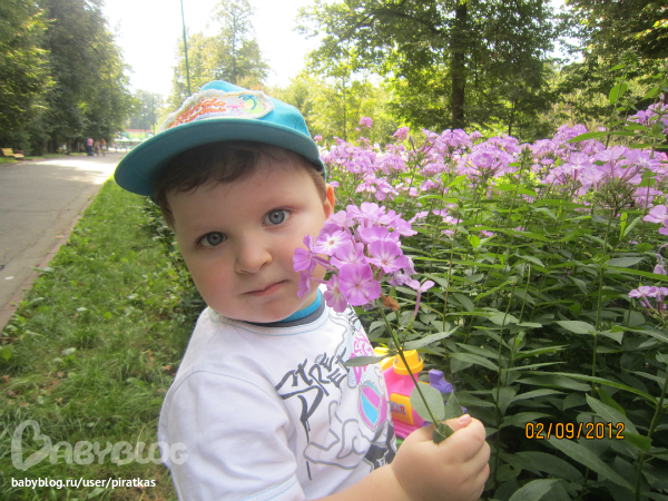 Покажу последние летние фото моего разбойника.На них Сашке 2г.и 2 мес ровно.Вес он уже не набирает.а вырос за 2 мес на 4.5 см. Итого- вес 23 кг. рост 97см .нога-17см с копейками.Кроссовки купили 28 размер.Кофта NEXT (он в ней на фото)-на 5 лет (по этикетке. Рукава заворачиваем.а по плечам и пузу как раз.)Голубая кепка это наша страсть!!! Сам ее выбрал и не снимает.Если надеваем что то другое.то кепа ДОЛЖНА БЫТЬ в сумке.У Сашки домашняя кличка-Лужков. МНОГО ФОТО