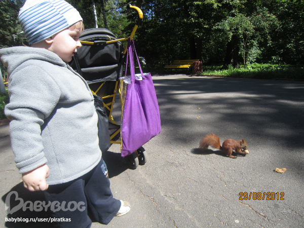 1) Кормим белок.Они наглые.толстые.чуть ли не в коляску лезут.
