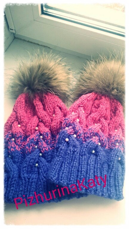 Шапочки в пристрое,потому что от них отказалась заказчица((((( Проморочила мне голову три недели своими завтраками,а теперь вообще на сообщения не отвечает. Очень обидно и не приятно!!!!. Так что пристраиваю теперь шапочки. Очень дёшево. Одна для мамы,вторая для дочи от 4 до 6 лет!!! Шапочки связаны из полушерстяной турецкой пряжи совсем не колятся. Помпон-натуральный мех енота.
