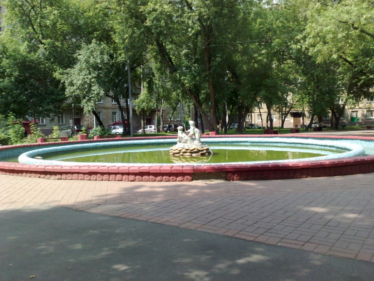 вот такой у нас фонтанчик, его включают, в жару мы плескались в нем, а мальчишки таскали бычков из сокольников и запускали сюда