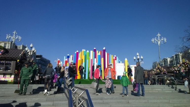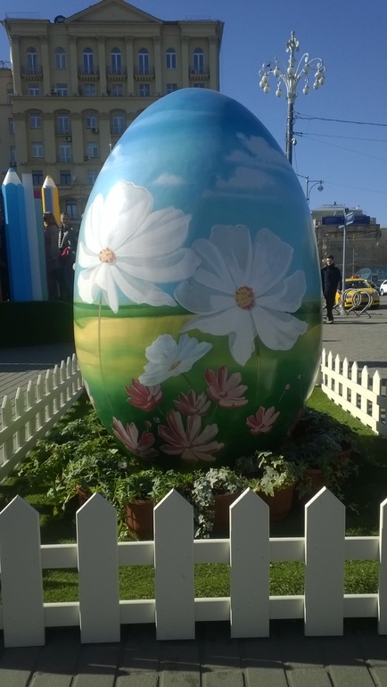 Сегодня,или вернее вчера у меня было в планах посетить тренинг по управлению своими эмоциями,а у мужа не вышло приехать,из за работа,чтобы с Владом посидеть и я на таких жутких эмоциях, т к управлять я ими не умею,вышла с Владом на прогулку. Как то не заметно дошли до метро и я предложила покататься. Вышли на Пушкинской,а там...!!!! Мама дорогая!!!! Я не меньше удивлена и была в полном восторге чем на новый год!!! Все в красивых яйцах!!!! Эти ленты на деревьях,ярмарка ( на которой я чудом не купила 2х литровую банку армянских баклажан), эти пасхальные инсталляции всякие,живые петухи и куры, а погода!!!!! В общем я так прониклась вся пасхальным настроением ! Домой вернулись уставшие,потрёпанные и с зелеными ртами от тархуна)