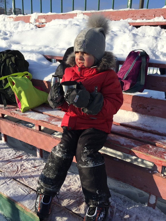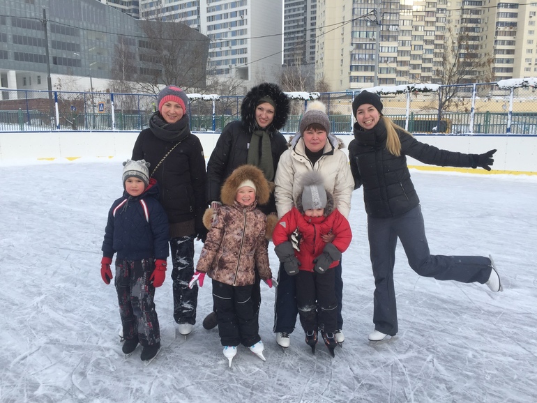 Если бы не она, я бы не сваляла валенки , не сплела бы снежинки из бисера, не ходили бы с пшеном в -20 в поиске голубей, чтобы сфотографировать с ними Влада. Одним словом она нам скучать не даёт . А сейчас какая то спортивная тема идёт , приносили фотографии в сад , чем ребёнок занимается вне сада, заполняли анкеты, как в семье со спортом обстоит. А в эту субботу Светлана Ивановна всех пригласила на каток. Я после падения очень боялась опять коньки надевать, ну раз надо, так надо) думала , что семей 10 откликнуться , в итоге пришло 3... Но.... Это был просто прорыв в катании моего ребёнка ,сколько раз мы ходили, муж его таскал по льду, как сосиску какую то... Вообще не как! А как только он увидел, что его одногруппники , товарищи и соратники катаются на льду, у Влада стало невероятным образом получаться . Муж такой довольный был, что за полтора часа такой совместной прогулки случилось столько пользы.