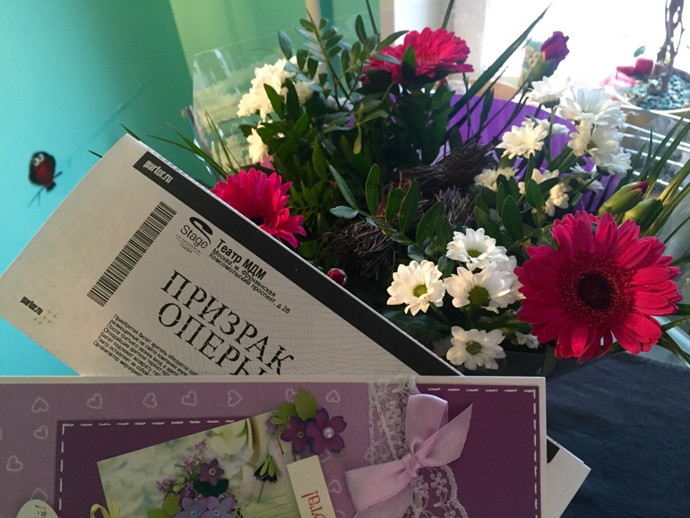 Просыпаюсь сегодня в 7 утра, и вижу на кухне цветы и конверт. Как же я хотела туда пойти !!!!! Ааааааа!!!!! Мои ещё спят , а я извелась уже от того , что у меня не платья, ни клатча нет)