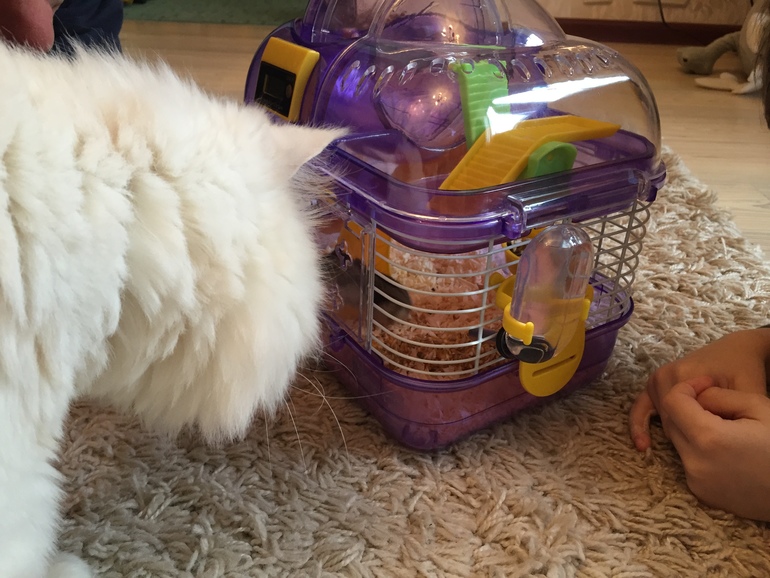 Мы говорили, что у нас кот, и хомяка никак нельзя. Но когда с ним пошла в контактный зоопарк, и самыми интересными животными для него были эти самые крошечные, неприметные, к тому же спящие хомяки, я поняла, что нужно купить. Теперь задача #1 , это убереч этого бедолагу от нашего кота.