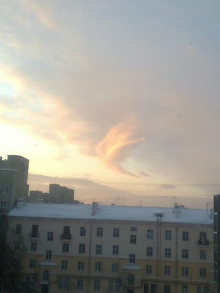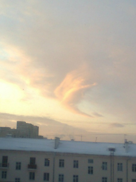 Ну не знаю, закорючки тут не вижу!!! тут стена из облаков а снизу голубь,четко!!!