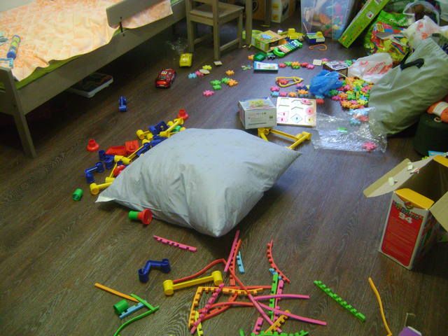 Как вы учите ребенка обратно собирать игрушки в коробку, все валяется