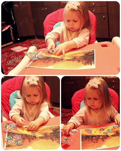 по прежнему любим делать аппликации из наклеек и картинок из яндекса..