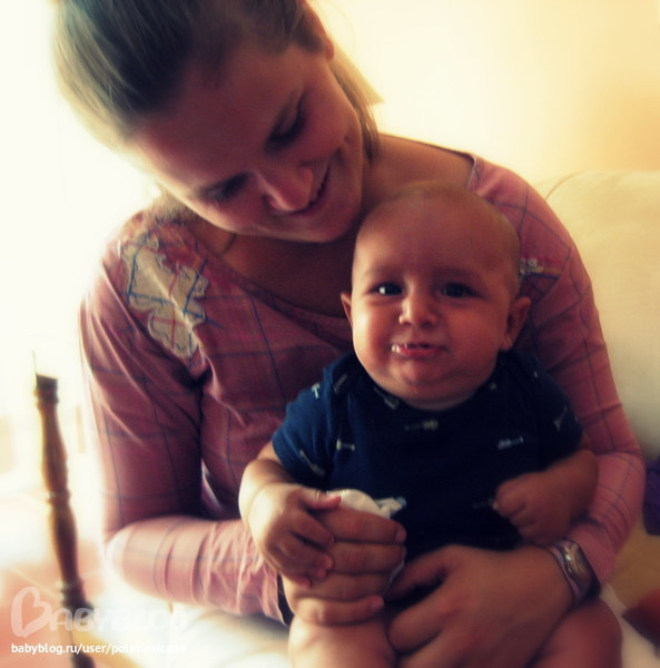 Первая фотка рассмешила, я думала, что ты Джоника чем-то накормила невкусным)) У нас тоже пока волосиков мало, а вот на ножках пока не стоим, ну то есть прямо не стоим. Только под углом 90 градусов))