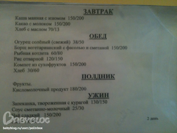 я не успеваю с утра прочитать меню..но седня на первый завтрак у них была каша вязкая с тыквой))))и у нас тож по два завтрака, из которых они терь очень мало гуляют..походу разные меню...