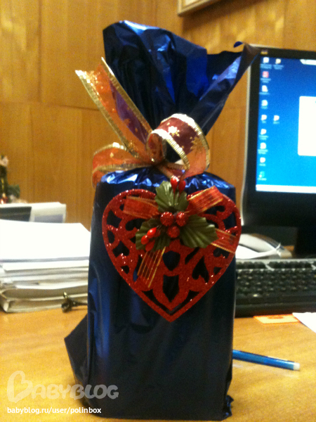Первое это, конечно, сладкий подарок! Еще не куплены, но это сейчас не проблема! В пределах 300 руб. Купила очень оригинальные рождественские сапожки здесь на ББ http://www.babyblog.ru/community/post/sale/2008723 ООООчень классные - таких ни у кого не было, ну и выглядят они совсем не на 300 р, родители были приятно удивлены. Это ж не картонная коробка, которая и два дня не проживет, сапожок можно потом использовать, в качестве новогоднего украшения дома, например, и даже подарки в него складывать.