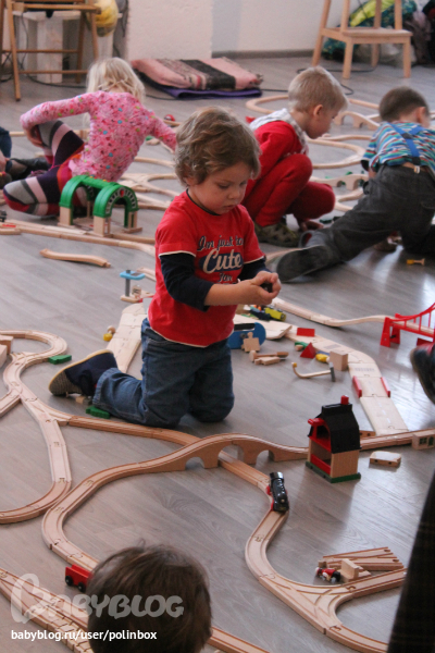 Еще поиграли в железную дорогу (Арсений и не прекращал ))) Надя, конечно, не так счастлива, как Арсюша )))