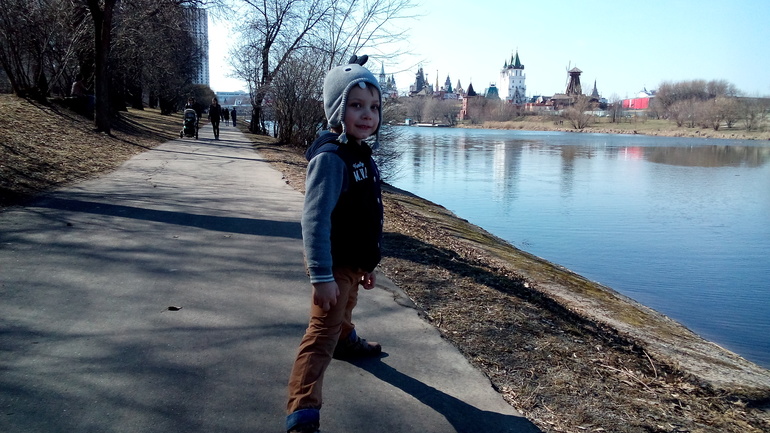 Мой любимкаРешили сегодня поймать момент, пока такая чудесная погода, и отправились гулять. На мой вопрос - Красная площадь или парк, Арсений уверенно выбрал парк. Не думал он, что парк бывает без аттракционов и детских площадок)