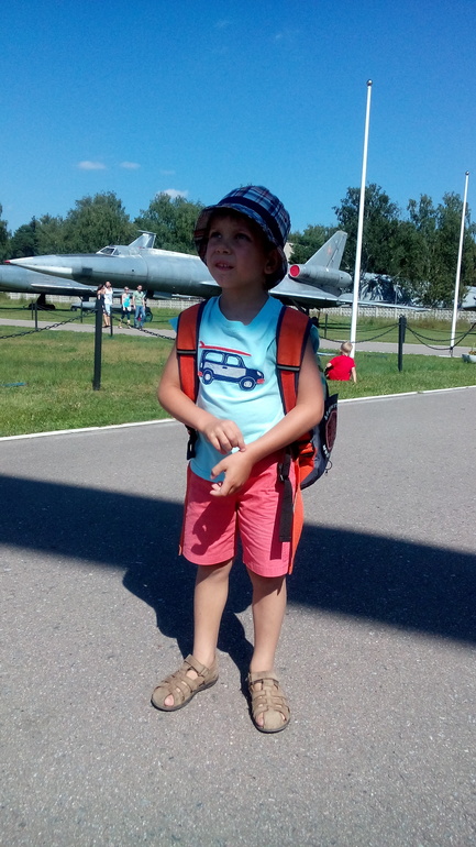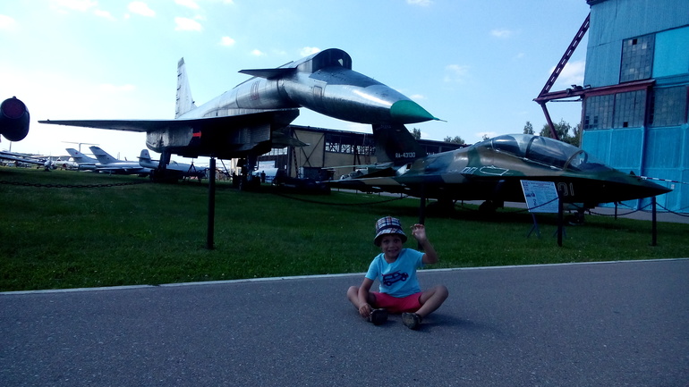 Экспозиция впечатляет, представлены экспонаты и времен ВОВ, и последние достижения времен СССР, есть экзотика времен начала развития авиации. Подробные отзывы есть в интернете, и в т.ч. на ББ. Чего не хватило... Мне - экскурсовода, мало сухой информации на табличках перед экспонатами. Арсюше - возможности залезть в настоящий самолет, потрогать, посмотреть внутри. А так прекрасная прогулка получилась) Порадовала Арсюшина внимательность. Обратил внимание на то, что днище и нижняя часть крыла у всех военных самолетов окрашена в голубой цвет. А мне и ни к чему) пришлось импровизировать)