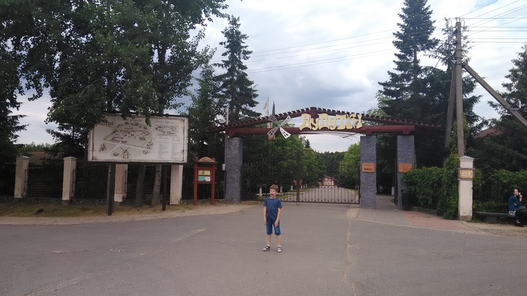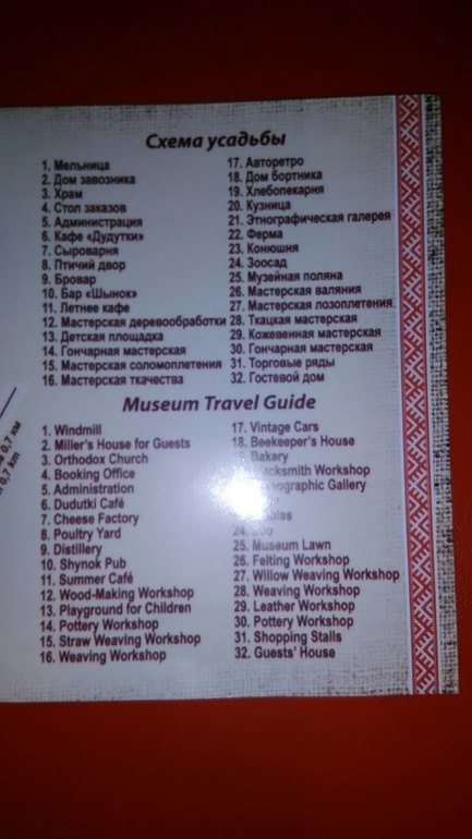 В будний день во второй половине дня народу почти не было. Хотя на стоянке было десятка два машин. Мы очень удачно прибыли, в 14.15 стартовала экскурсия с гидом. Набралось всего три семьи, так что почти индивидуальная) Два раза в день водят сборные группы. Стоимость ненамного выше по сравнению со свободным посещением. Если вы не попали на экскурсию, можно взять аудиогид. Мы заплатили за двоих 26 бел рублей, экскурсия по всей деревне длилась почти два часа.