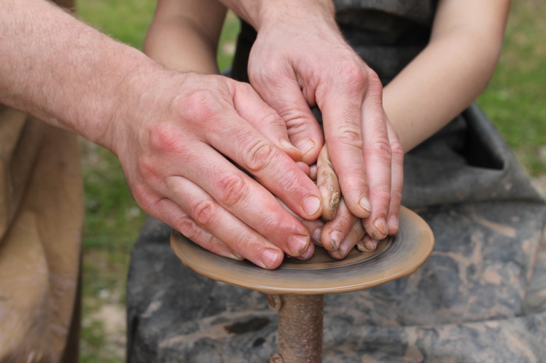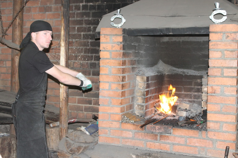 В мастерской ткачества можно было попробовать свои силы на ткацком станке. В пекарне угостили чаем со свежим хлебом, с маслом и сыром, сделанными на местной сыроварне. В гончарной посмотрели как гончар изготавливает на гончарном круге кувшинчик. В кузнице один из мужчин выступил в роли подмастерья, мальчишки даже молот поднять не смогли)